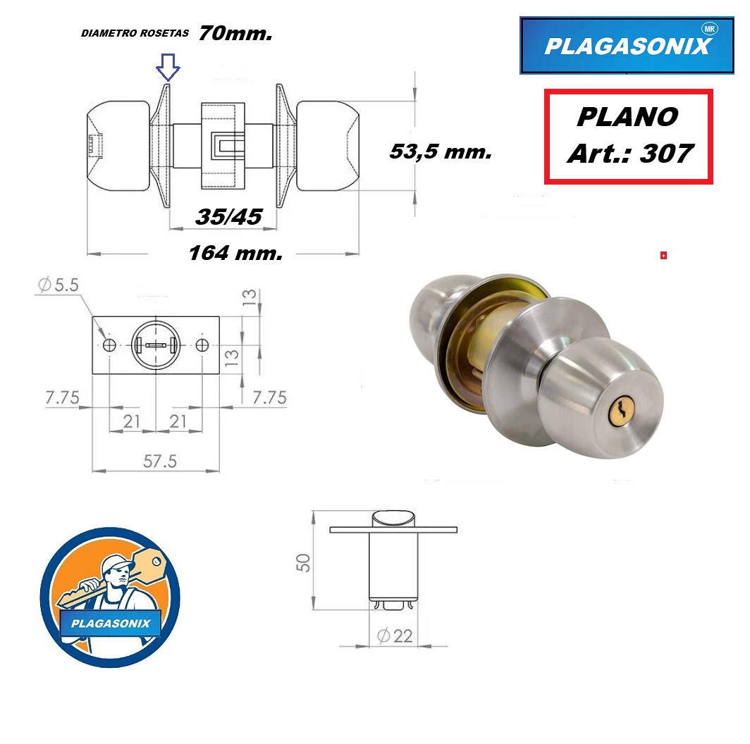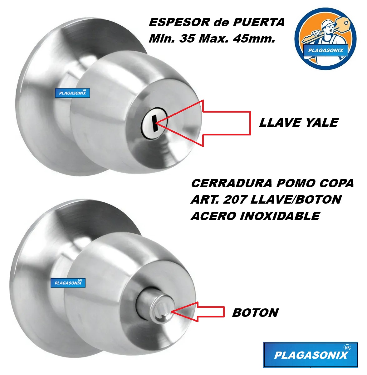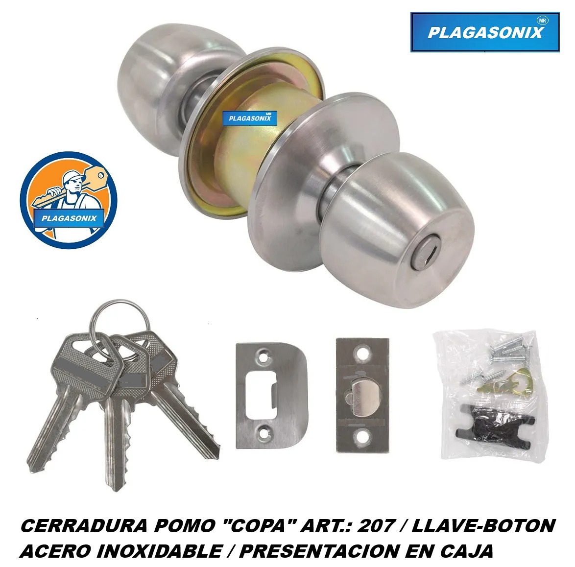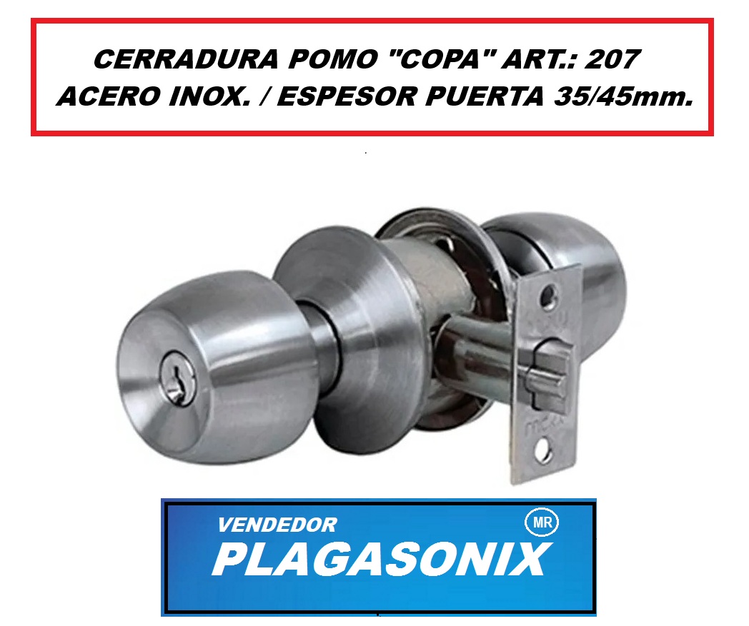 CERRADURA POMO COPA ART 207 LLAVE/BOTON ACERO INOX